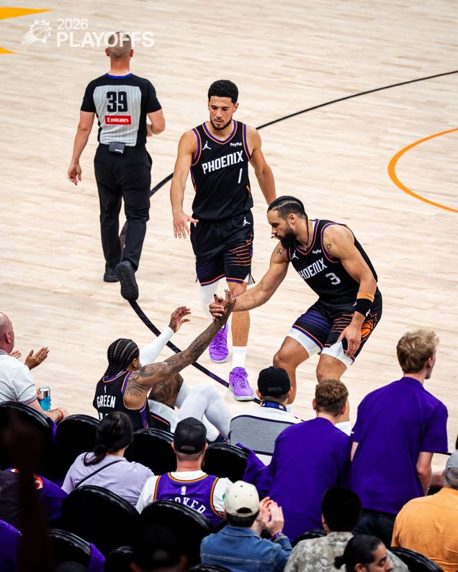 太阳队首发阵容:吉莱斯皮、布克、格林、布鲁克斯、伊戈霍达罗